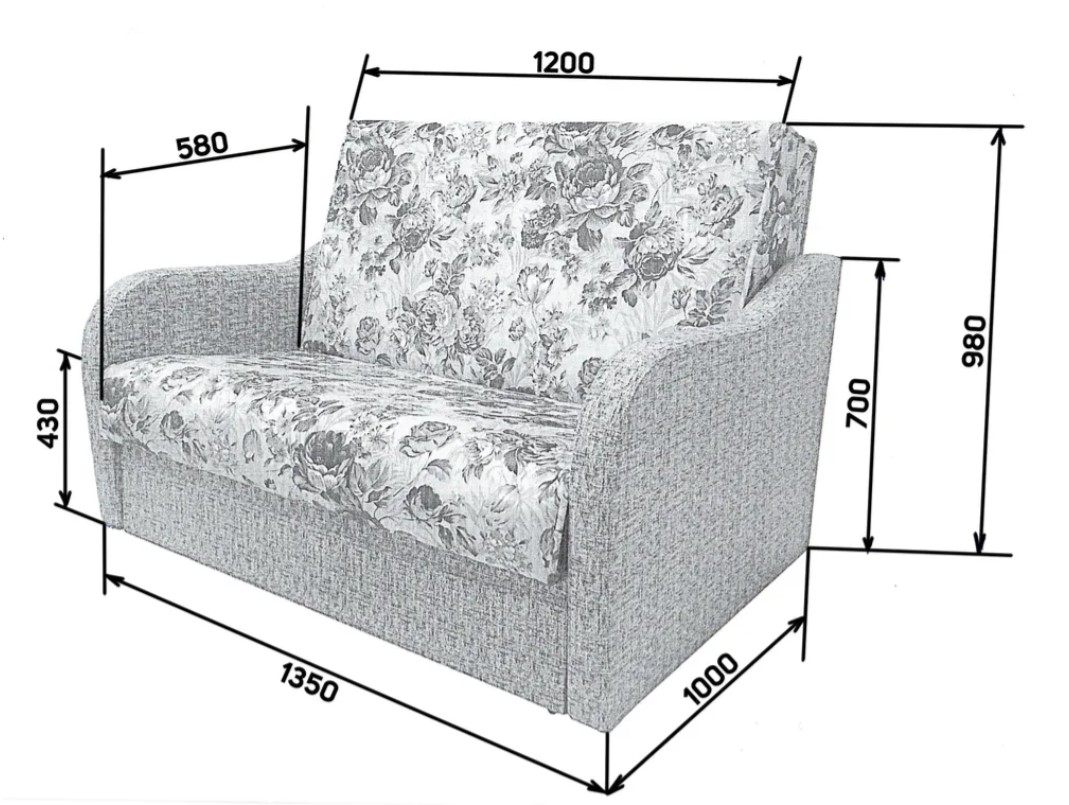 85х99х98, 115х99х98, 135х99х98, 155х99х98, 175х99х98; 195х99х98; высота сиденья 44